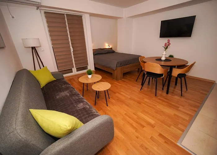 La Plaza Macedonia está a aproximadamente 1 km, mientras que el Vero Center Mall se encuentra no demasiado lejos de este apartamento de 32 m^2. Este apartamento está situado a tan solo 12 minutos a pie del Museo de la Ciudad de Skopje y el aeropuerto Internacional de Skopie, a 23 minutos en coche.